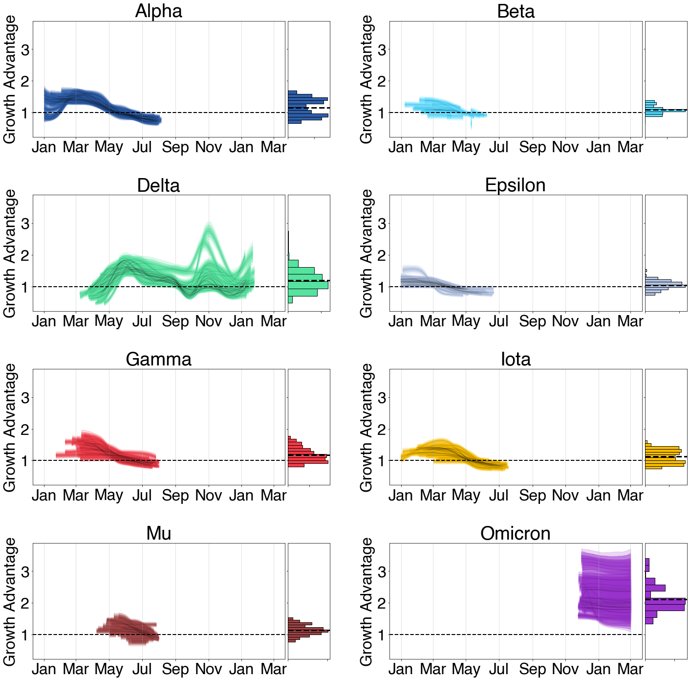 This includes both software (like that used to make today’s figures) and mathematical machinery that teaches how and why growth advantages may appear between pathogen variants.